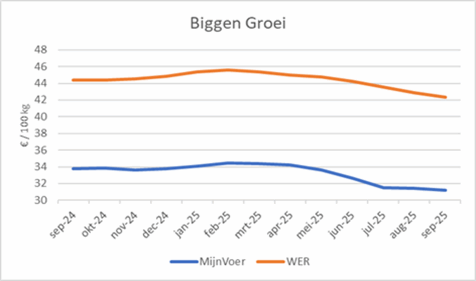 Onderzoek van Wageningen University & Research toont aan dat de kostprijs van een big en een vleesvarken in Nederland tot 16 eurocent per kg slachtgewicht kan dalen met onafhankelijk advies en het voerplatform MijnVoer. Dit komt door de combinatie van verbeterde zoötechnische prestaties en een scherpere voerprijs. Ongeveer de helft van deze besparing wordt gerealiseerd op het zeugenbedrijf, de andere helft kan bespaard worden in de mesterijfase, zo toont het onderzoek aan. Het onderzoek van Wageningen University & Research is mede gebaseerd op uitgangspunten die door MijnVoer zijn aangedragen.